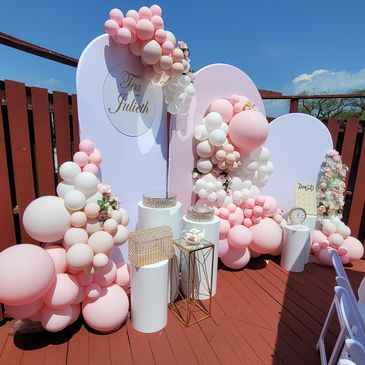Cake Table 12 ft focal Wall (Balloons, Drapes, Walls, Cake Table/Pedestles, Pastrie/Cake Stands, Artificial Flowers)